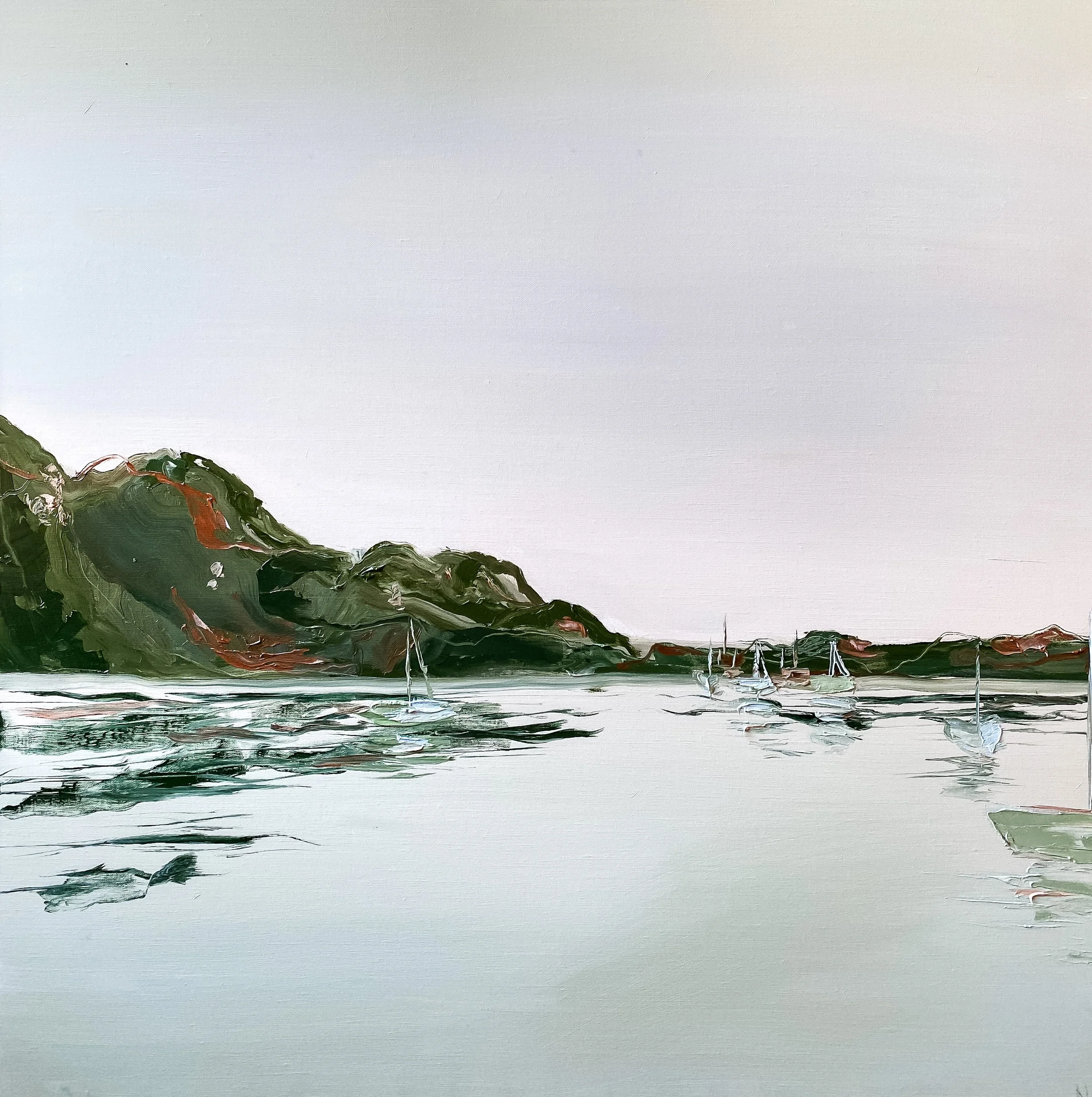 The same local landscapes repeat over and over again, as we all settle in to routines and local walks. Tonal colours force the eye to examine textures, brushwork, shape and light. Similar scenes are paired, each bringing different emotion and atmosphere, a different day.